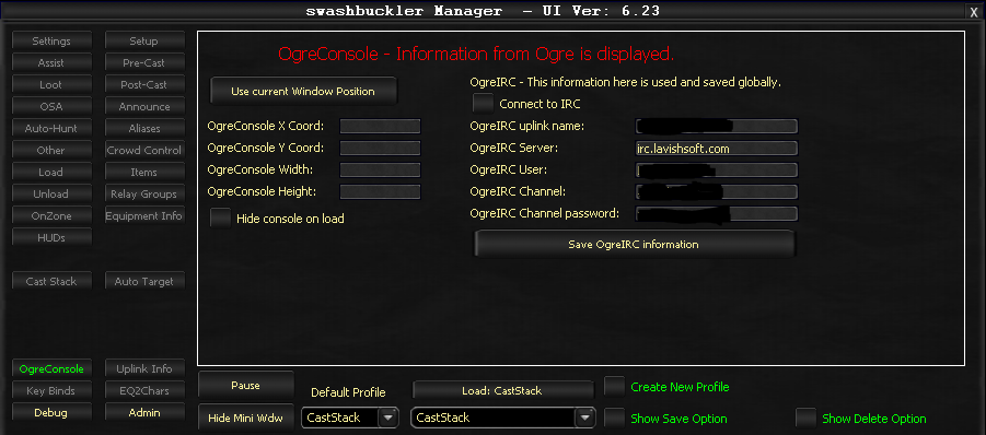 I did not want to end up with 2 EQ2 windows, 2 EQ1 windows, and who knows what else to update. That's where this new window, called OgreConsole came from. A one stop shop for every game, for every message Ogre, or anything Ogre related needs to give you information about.